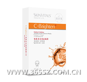 推荐理由:Skinvitals维肌泉面贴膜利用先进的技术,籍由肌肤细胞间的水合作用,悉心呵护您的肌肤,带给肌肤水嫩柔滑的感觉。Skinvitals维肌泉面贴膜令您足不出户就能得到个人SPA面部护理效果。Skinvitals C-Brighten维肌泉l亮颜面贴膜蕴含维他命C和姜素精华浓缩液,能使皮肤盈皙亮泽,同时能补充并锁住水分,令肌肤重现清透与光泽。柔致晶澈,明亮动人,持续使用,使肌肤看上去更加健康光泽。